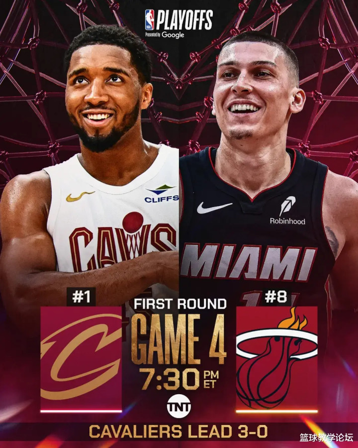 单场55分是季后赛历史第四大分差,仅次于两个58分和一个56分!米切尔22分5助、亨特19分、杰罗姆18分3板5助、莫布利17分7板2帽、阿伦14分12板2助6断、贾旺特-格林11分。约维奇24分5板2助2断、阿德巴约13分12板4助。